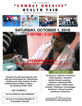 Crossland Karate, Inc.; in working in partnership with Greenbriar Mall is presenting it's 7th Annual Physical Activity, Nutrition and Combat Obesity Health Fair. It is our honor to have you take part in this event by assisting us in providing participants with healthy activities, demonstrations, and other health related information and resources to combat obesity.